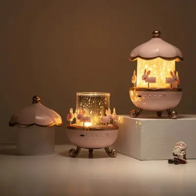 Bunny Carousel Night Light Projector – Rotating LED Star Projection Lamp for Kids Room & Magical Nursery Decor Rotatable Rabbit Night Lamp