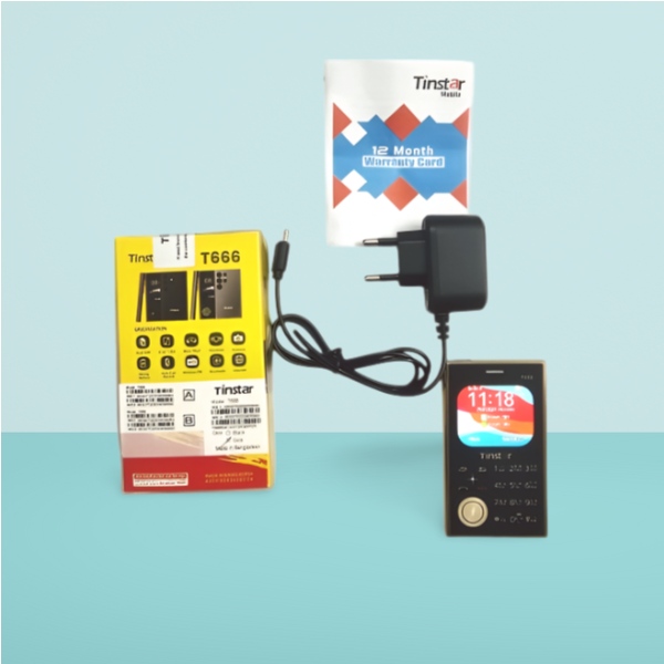 Tinstar T666 Dual SIM Card Phone (Golden) হলো একটি স্মার্ট, পোর্টেবল ও আকর্ষণীয় ফিচার ফোন। এর লাক্সারি গোল্ড ডিজাইন, ডুয়াল সিম সুবিধা এবং শক্তিশালী ব্যাটারি একে শুধু একটি ফোন নয়, বরং একটি প্রিমিয়াম স্টাইল স্টেটমেন্টে পরিণত করেছে।