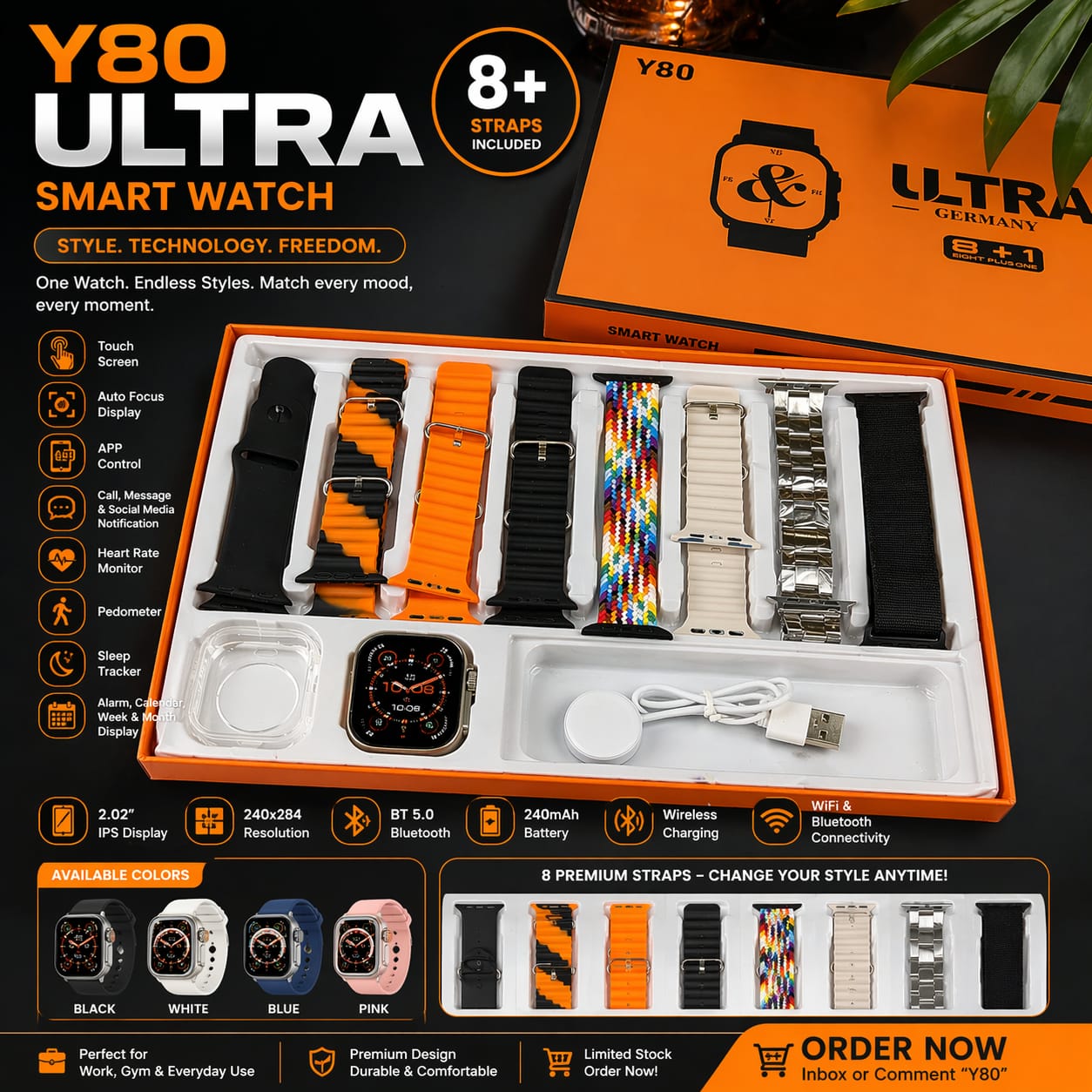 Y80 Ultra Smartwatch With 8 Strap